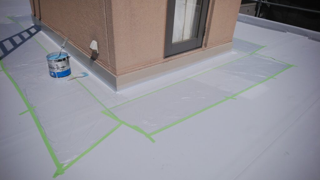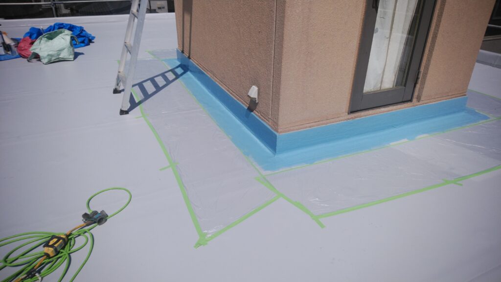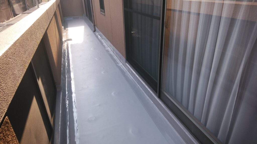 シート防水 ベランダには歩行用パネル 軽歩行仕様 立上りはウレタン防水 複合工法